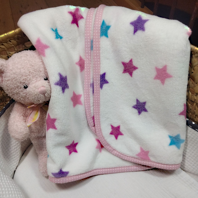 Couverture doudou étoiles rose bleue et mauve